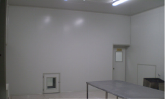 | 關(guān)于食品潔凈車間的結(jié)構(gòu) 根據(jù)《潔凈廠房設(shè)計(jì)規(guī)范》車間的墻體和吊頂必須采用不產(chǎn)塵、不積塵表面平滑的材料施工, 并且不能在車間中存在死角。采用凈化廠房施工專用彩板,基板頂板采用寶鋼0.4的鋼板,芯材密 度達(dá)到14kg/m3,鋁材采用專用鋁型材,為提高凈化間... |
